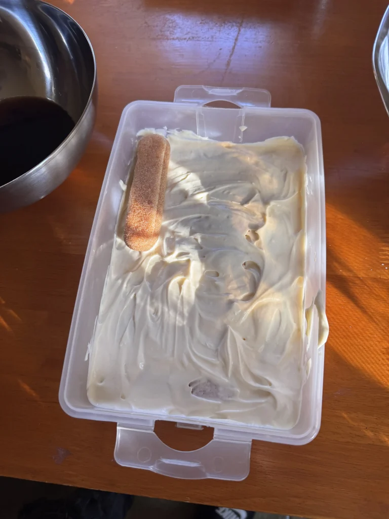 4. lépés - Piskóták kávéba merítése + tiramisu összeállítása
